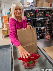 Sometimes Wilkinson volunteers at the thrift store, helping to sort or scan, or breaking down cardboard, carrying boxes of food, and raking leaves. “Whatever the heck they need.”