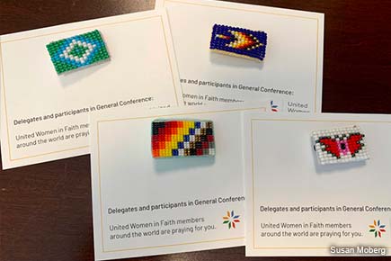 The international United Methodist connection was, in fact, the inspiration for the project. Mixon, retired corporate secretary for United Women in Faith, was on a volunteer trip with United Women in Faith partner Shared Interest to South Africa, where she witnessed local women making beadwork. Why not invite Indigenous women in the United States to create the gifts for General Conference in order to help economically empower them?