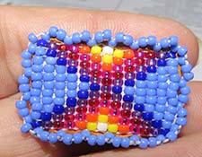 United Methodist Women member Glenna Brayton, a Choctaw tribal member from Oklahoma now living in Colorado, invited nearby Navajo artists from the Utah/Western Colorado District Committee on Native American Ministries to contribute to the work on the pins. Thousands were loomed from people all over the region. Each pin is unique.